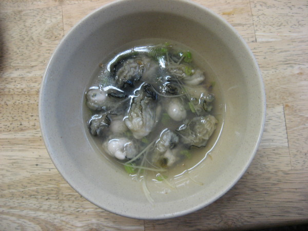 先喝完這碗湯,讓大家看看碗底漂亮的蚵仔。