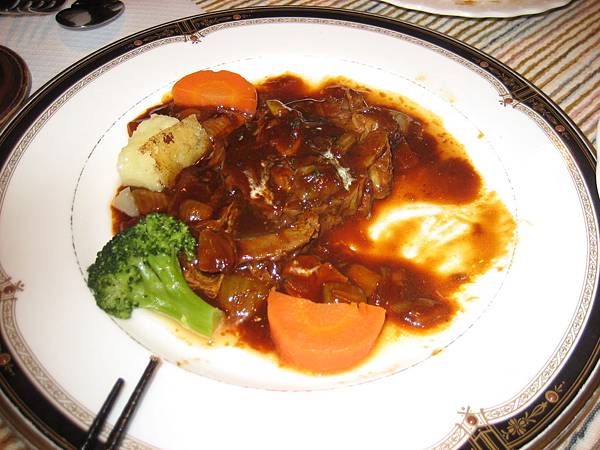 這份久燉而製成的牛排,爛到用筷子即可剝開,不用刀叉。牙齒不好的人,想吃牛排,來這裡算找對了地方。醬汁也是久煮而成,配上入味的牛排,堪稱極品。另外,這裡的飯也特別好吃。不枉我們加錢把麵包改為飯。