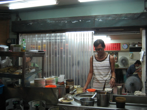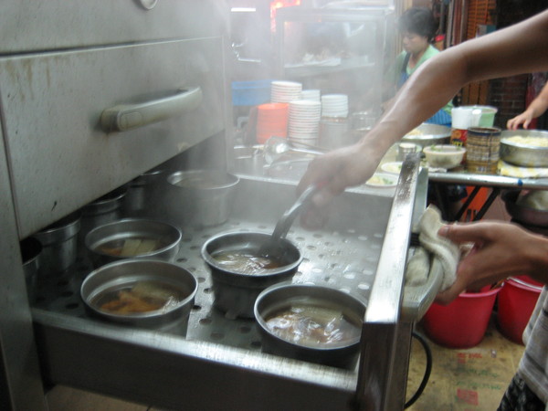 年輕的老闆把蒸籠裡的排骨酥湯: