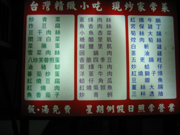 約十年前左右,我們喜歡到長安東路與天津街交叉口附近的八珍小吃吃飯。後來該店歇業,甚感悵然。數年之後,到六福客棧一帶逛街時,才發現原來它的本店就在附近巷裡。以後到這裡的學者或長春影城看電影時,如果時間許可,就會到這家店用餐: