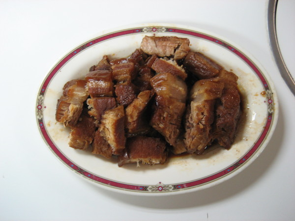 八珍小吃的紅燒肉,吃到嘴裡,不硬不澀,非常甜美。可惜三層肉裡最甜美的肥肉部分,經過一番掙扎,終究不敢下肚。